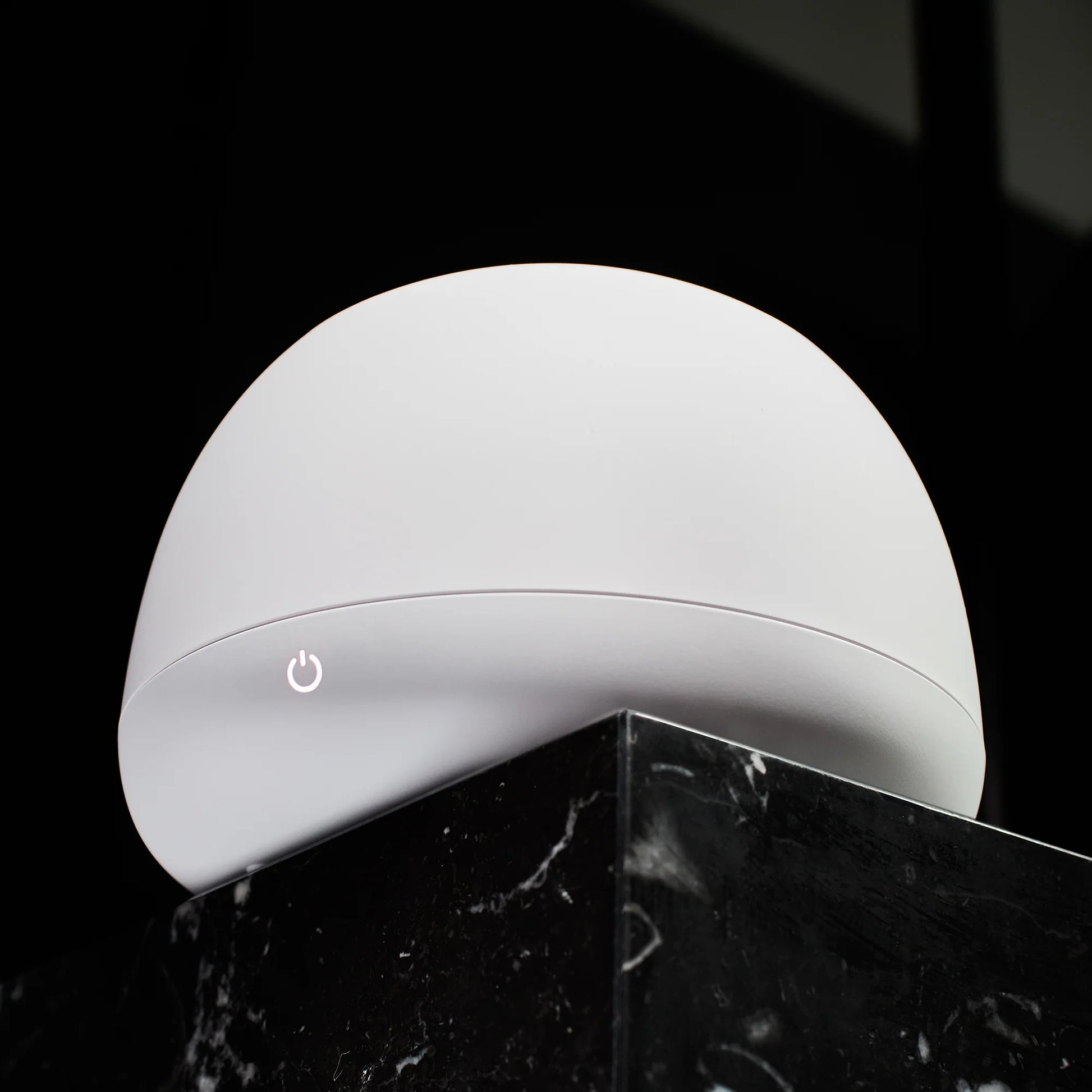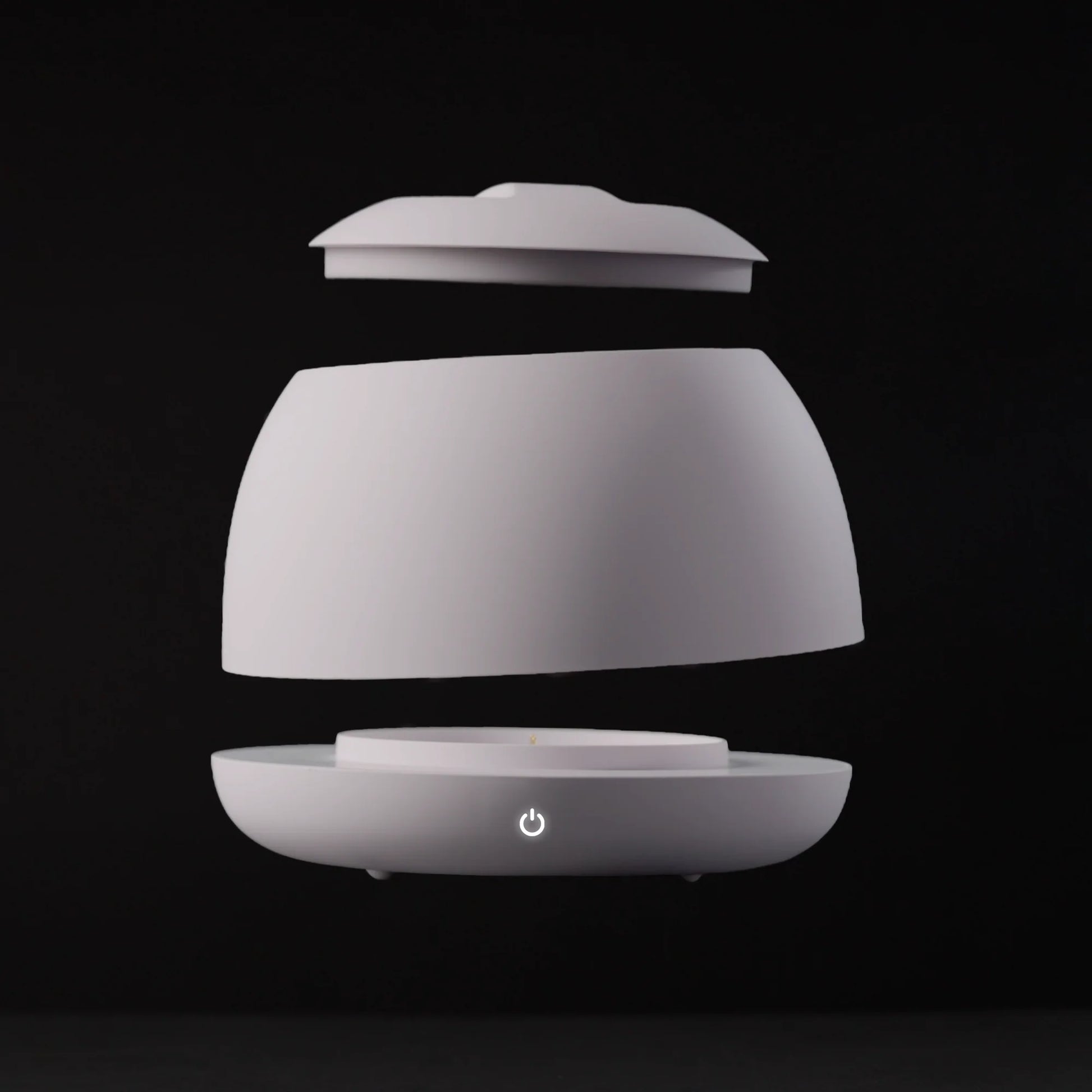 A gentle push desliza a tampa; o ímã interno a mantém fechada para limpeza segura com UV. Design pensado para abrir/fechar até com uma mão.